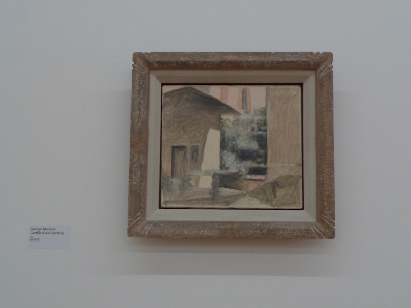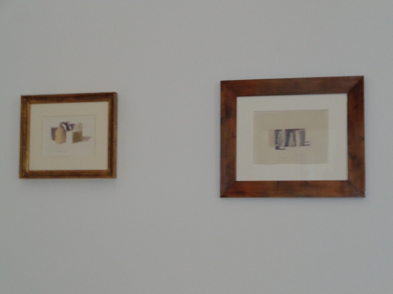 In den Räumen des zweiten und des dritten Obergeschosses dann die Austellung mit zahlreichen Werken  von  Giorgio  Morandi .   Zeit seines Lebens widmete sich Morandi der Darstellung einfacher alltäglicher Objekte.Bei uns werden 60 seiner Arbeiten  gezeigt und in einen Dialog gesetzt mit Werken anderer Künstler/innen..  Morandi ist einer der großen Einzelgänger der zeitgenössischen  Malerei  (1890 – 1968  Bologna) und hat als solcher hohe Anerkennung erfahren .Er lebte zurückgezogen von der Außenwelt wie ein Mönch und lverstand die Malerei als   „Exerzitium“ =  Denkwerkstatt.